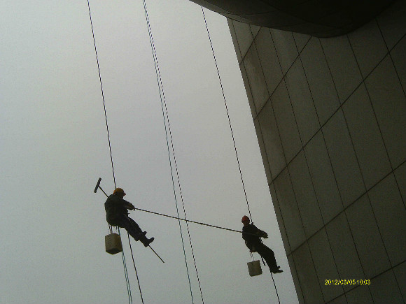 高層外墻工程包括: 高層外墻清潔、高層玻璃幕清潔、高層外墻粉刷、高空外墻廣告安裝。因?yàn)楦邔油鈮Υ嬖谥kU(xiǎn)性和復(fù)雜性, 所以這項(xiàng)工作是有著相當(dāng)程度的科學(xué)性和專(zhuān)業(yè)性。